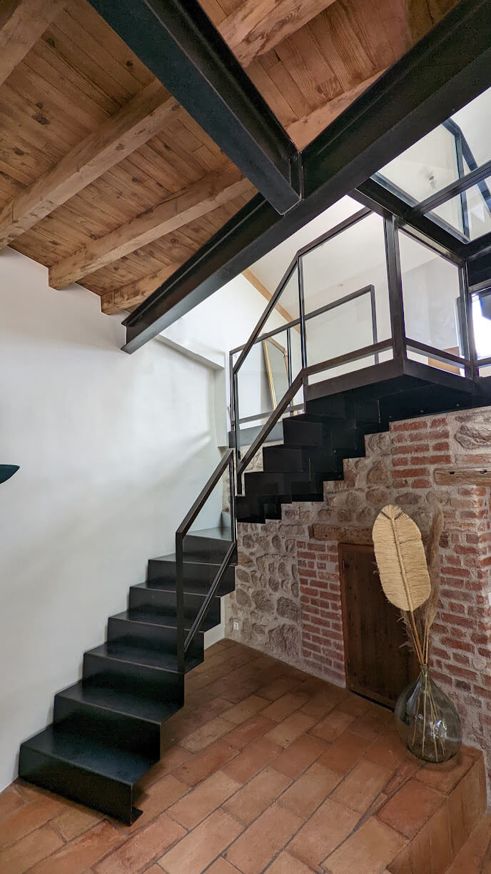 Réalisations Escaliers Retour aux réalisations Garde-corps & barrières Retour aux réalisations Mobilier intérieur & extérieur Retour aux réalisations Verrières & menuiseries métalliques Retour aux réalisations Études Retour aux réalisations Industrie Retour aux réalisations Pour nous contacter c’est par ici ! Contact Un projet ? Une envie…N’hésitez pas à nous soumettre votre problématique, nous serons ravis de vous apporter la solution !